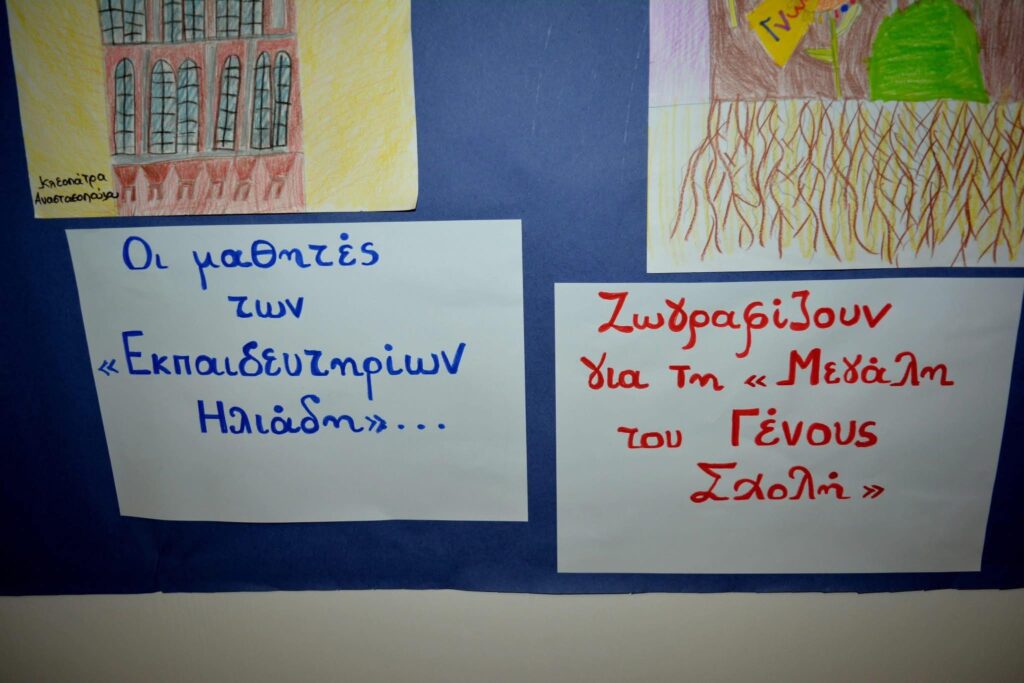 Μετά την ομιλία του κ. Άγγελου Συρίγου ακολούθησε η απονομή βραβείων των μαθητών οι οποίοι διαγωνίστηκαν ζωγραφίζοντας την Μεγάλη Σχολή! Τον διαγωνισμό οργάνωσε η Παιδική Πινακοθήκη Ελλάδος με διευθύντρια και οργανώτρια του διαγωνισμού την κ. Αικατερίνη Λέγγου, η οποία μας εξήγησε και πως πραγματοποιήθηκε ο διαγωνισμός με συμμετοχή περίπου 1800 μαθητών!